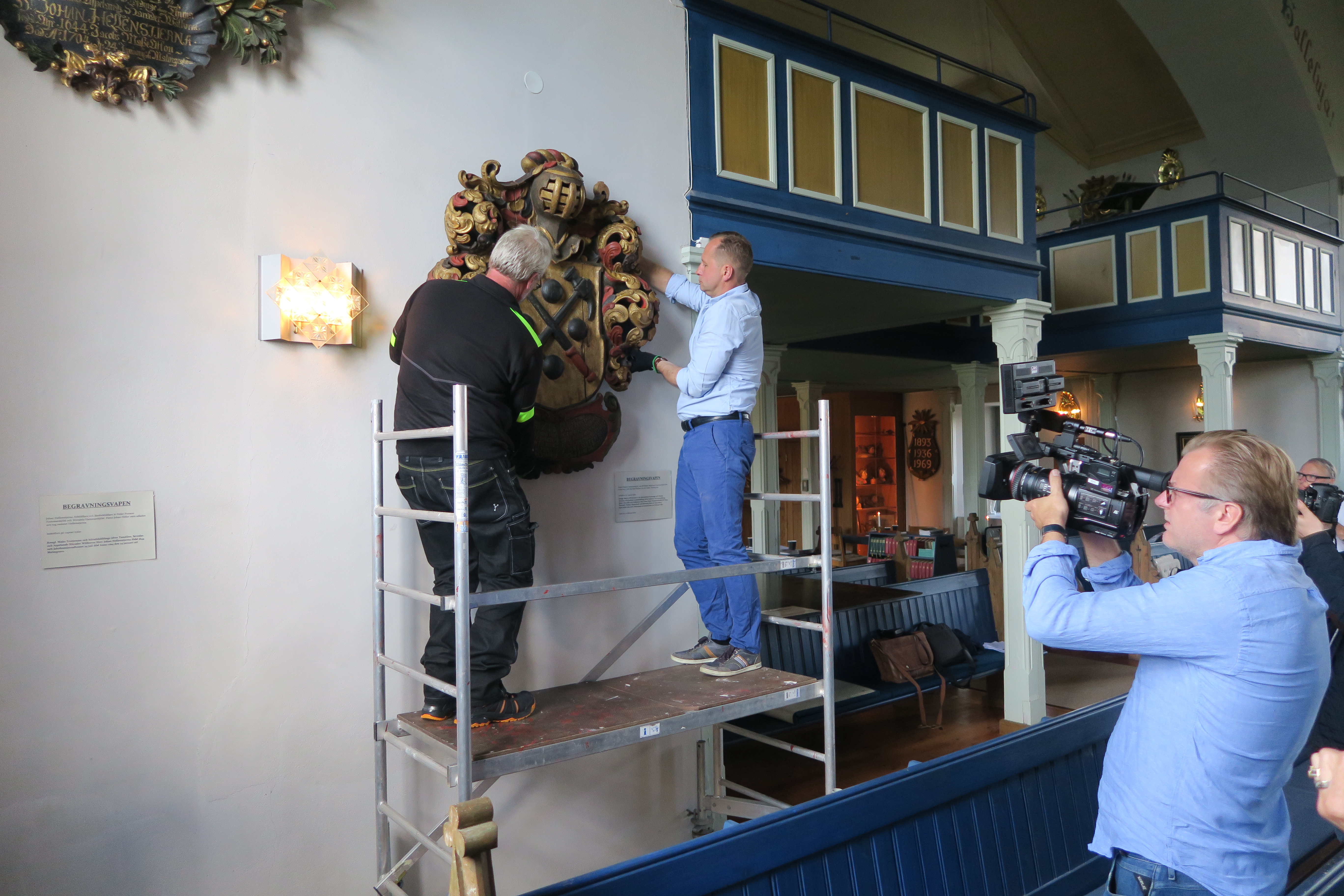 Ett saknat och unikt stycke släkthistoria hänger åter på sin plats i Tuna kyrka. Peder Persson Hammarskiölds begravningsvapen återfanns nästan av en slump 15 år efter den mystiska stölden.